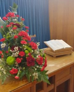 Our worship today was led by three of the church elders. With the minister “on sick leave” , Mike, Anne and Liz are using a service written by Sue McCoan who is a URC minister to two churches in London. This written resource is made freely available on the URC website to churches for occasions such as today.