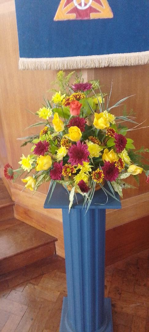 Today was the occasion of our annual Harvest Festival. The recording of the service is introduced by the duty elder, Anne Farrow and the worship is led by the minister, Revd Robert Jordan. Other voices you will hear are those of Eddie Thomas, reading from the book of Ruth, and David Leadbeater who devised and read our prayers of intercession. In addition you will hear Sarah Adland who came to us from “Tearfund” and who helped us launch the Harvest Appeal to support a project in Mali (see elsewhere on this website for further details).