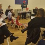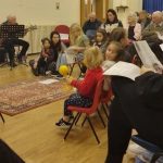 It’s 12 years since we held our first event of this sort. Originally called “Carols in the Car Park”, the idea sprung from an event Steve had heard of in Sydney Australia where a mid-summer Christmas lends itself to open-air singing. After two years of wet, miserable evenings in the run-up to Christmas in Swindon, we decided to permanently hold it in the church hall and it became ‘Carols on the Carpet’! But the fun of singing together and the enjoyment of watching the excitement on children’s faces doesn’t change! This year was certainly no different – as these few photos display. A great time was had by all as we tackled Christmas songs and favourite carols (Silent Night will never sound the same unless accompanied by children’s percussion instruments!) Even Santa heard the rendition of “Jingle Bells” and called to see what was going on.
